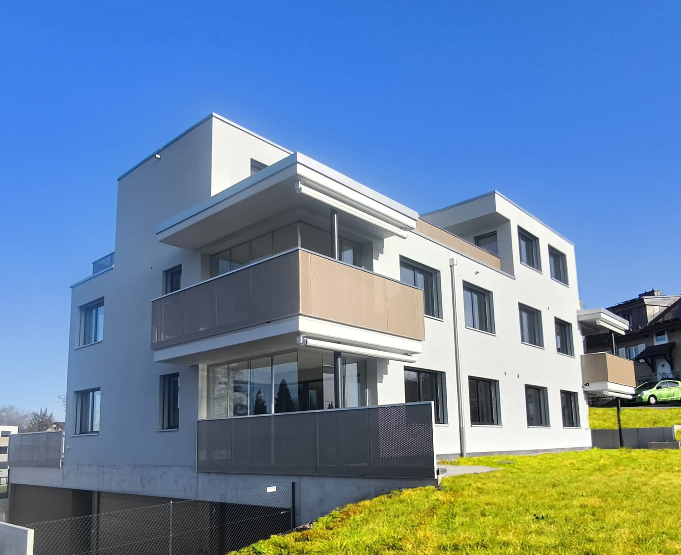 An der Riedenerstrasse in Dietlikon entsteht ein neues Mehrfamilienhaus mit 5 Mietwohnungen und einer Dreifachgarage. Mehr Infos Mehrfamilienhaus Riedenerstrasse Dietlikon ZH, 2024 An der Riedenerstrasse in Dietlikon entsteht ein neues Mehrfamilienhaus mit 5 Mietwohnungen und einer Dreifachgarage. Baustand - fertiggestellt
