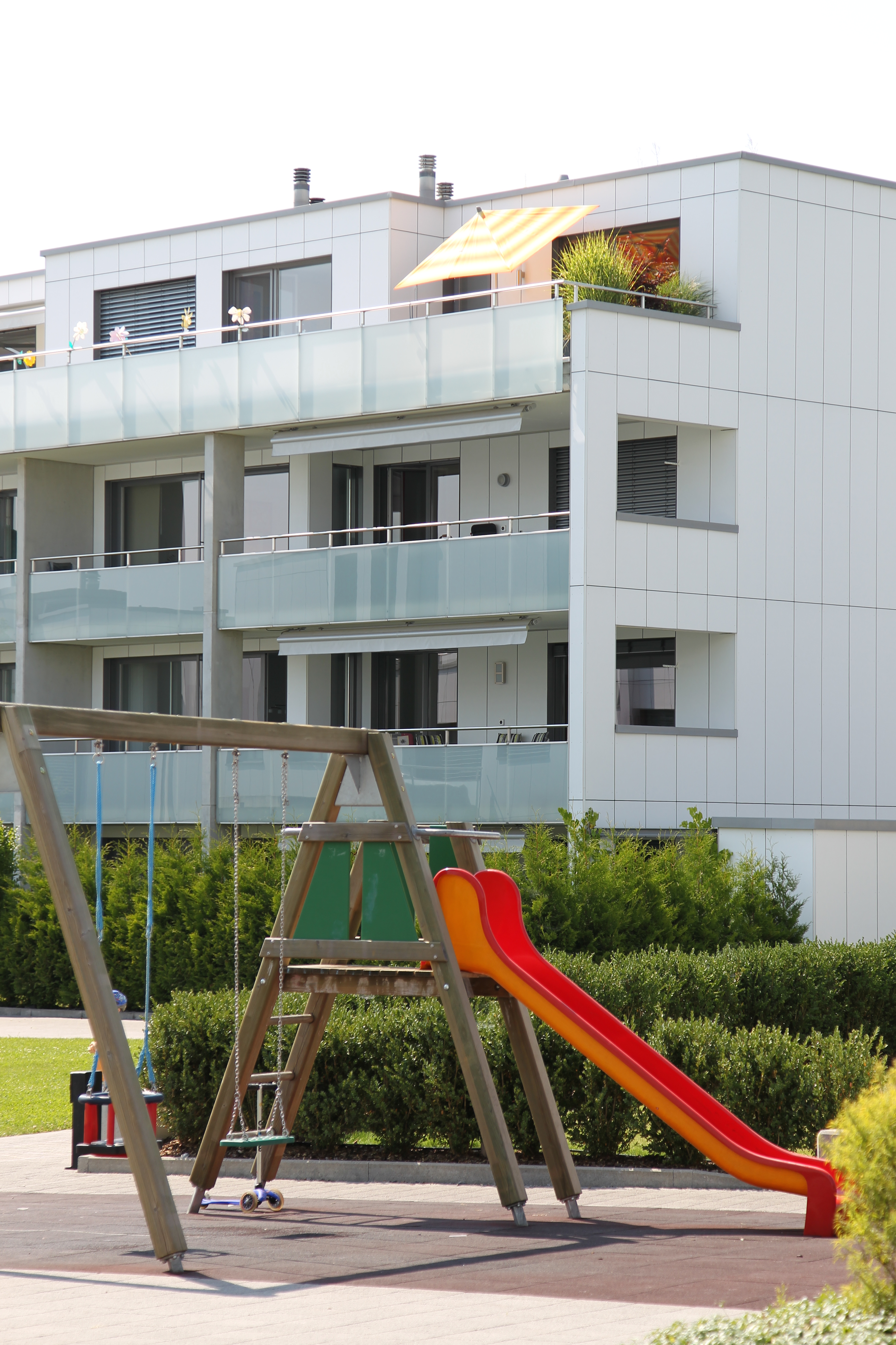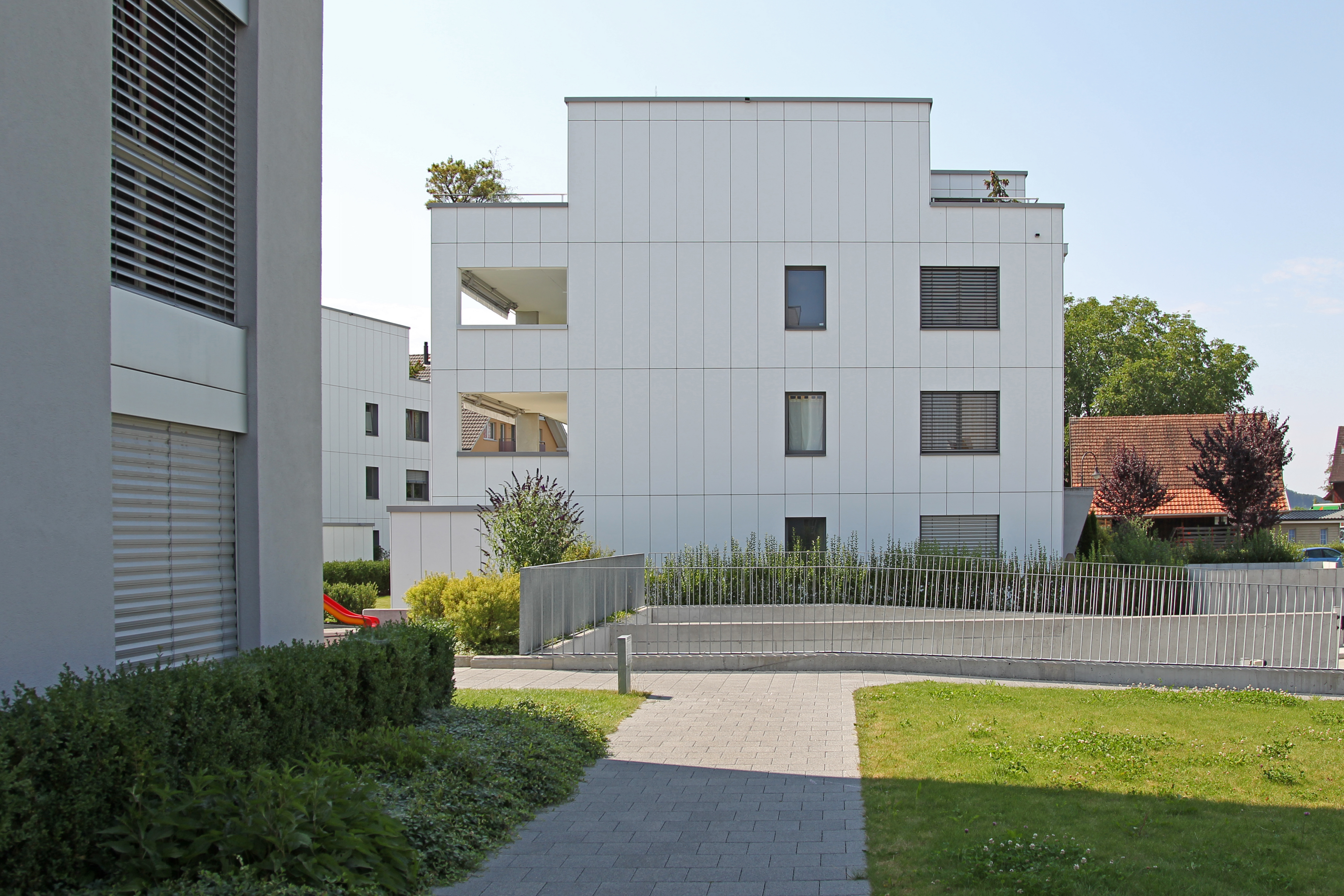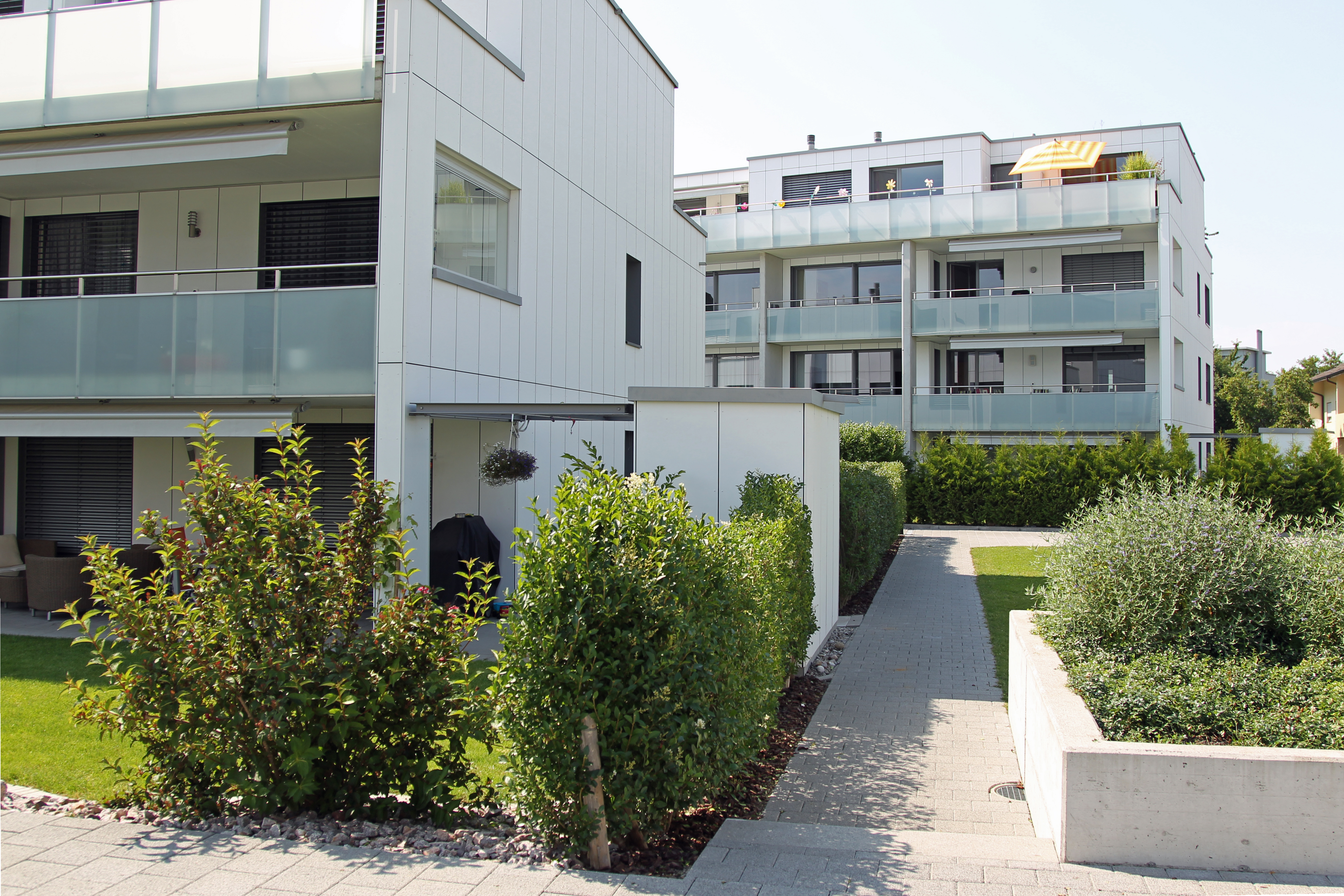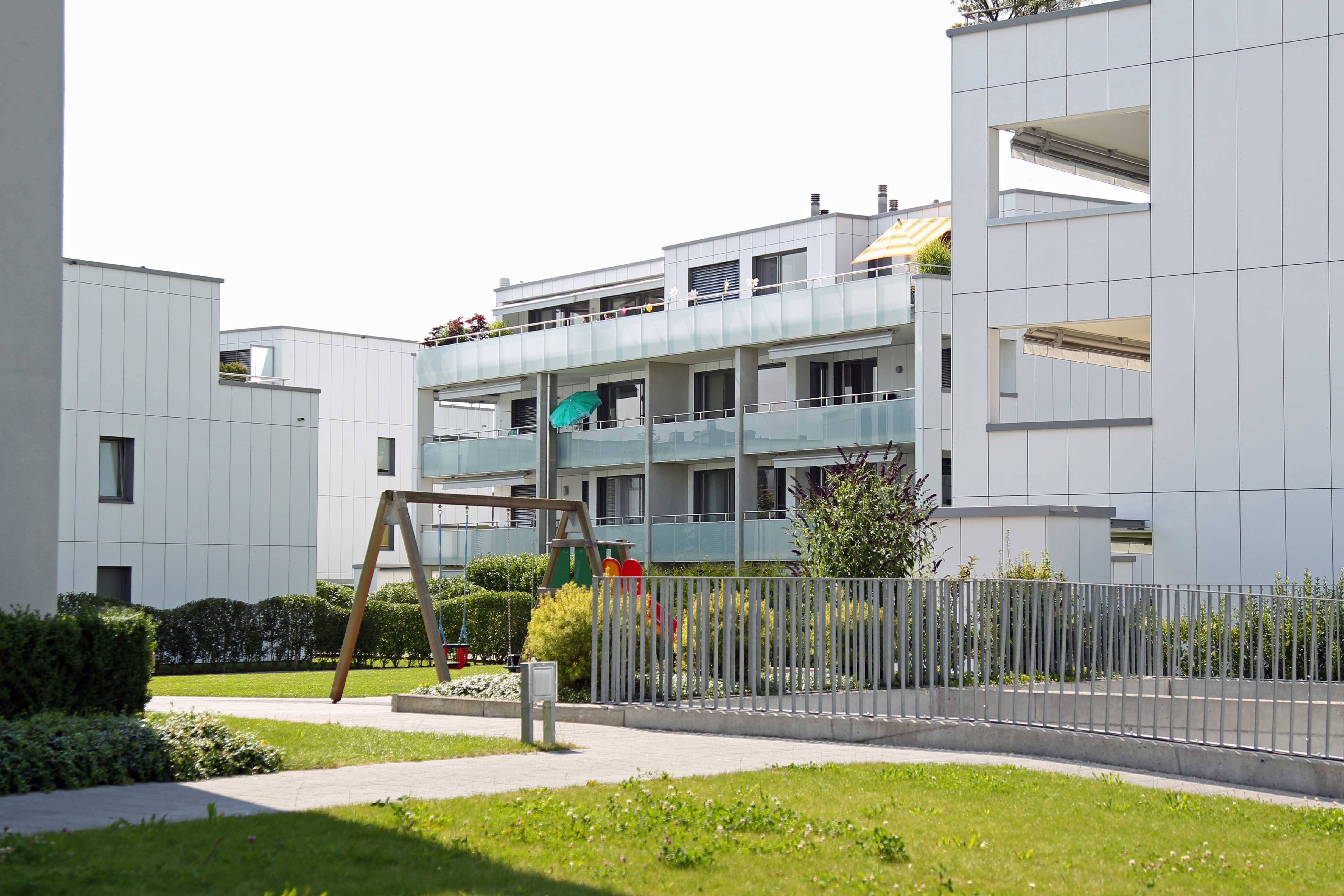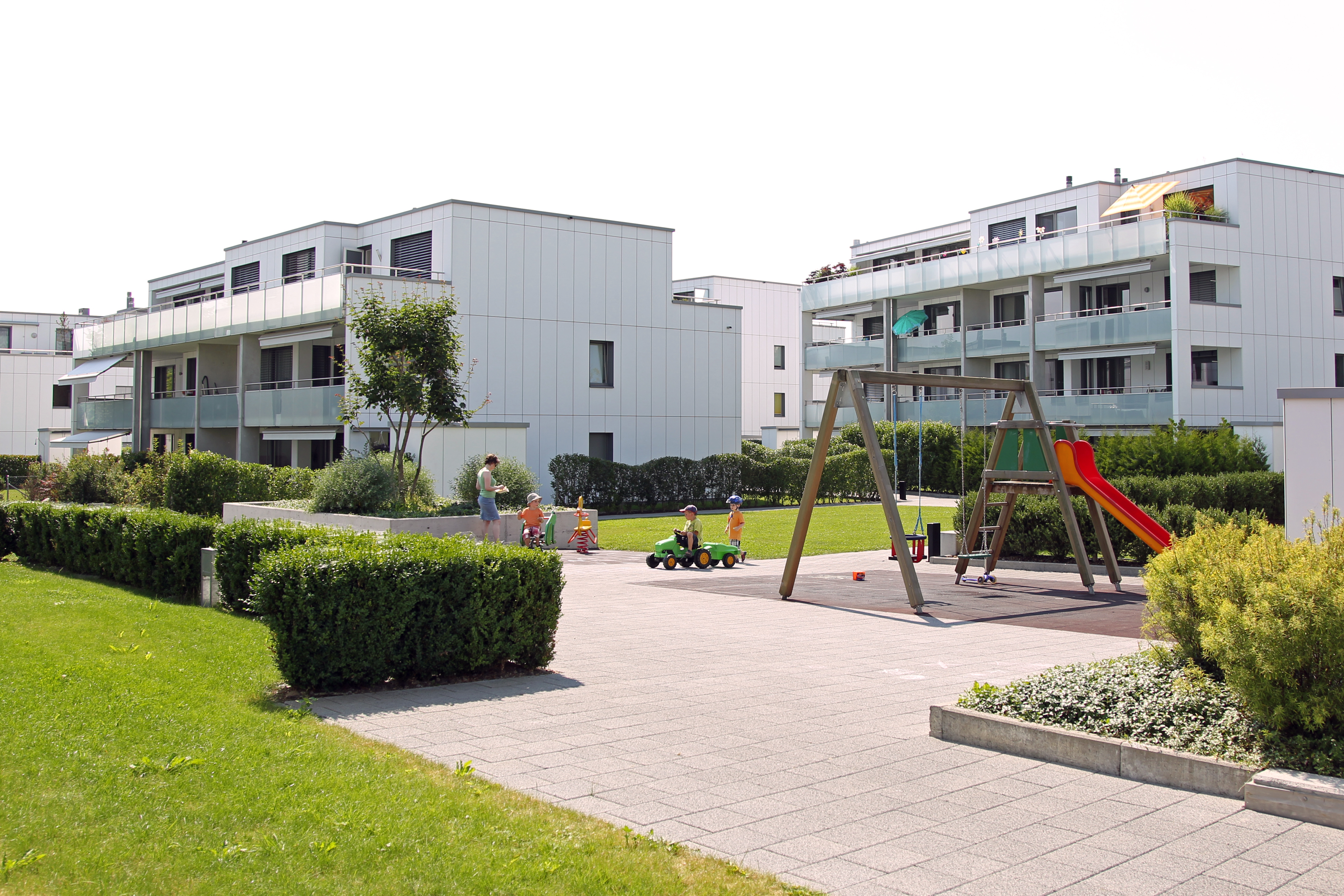 Projekt: Neubau von sechs Mehrfamilienhäusern mit 26 Eigentumswohnungen und 12 Mietwohnungen, zentrale Unterniveaugarage, EKZ-Contracting mit Erdgas