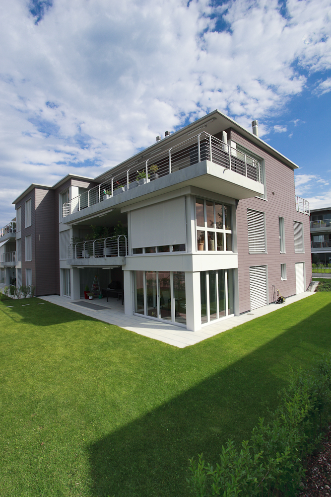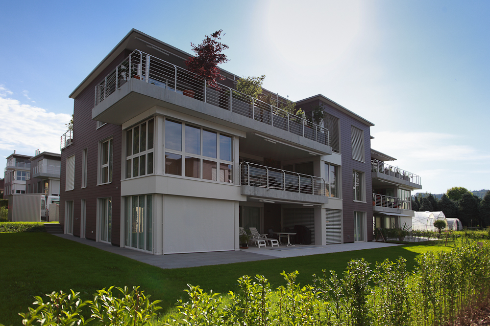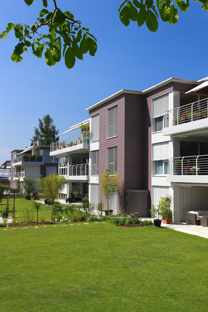 Projekt: Neubau von sieben Mehrfamilienhäusern mit 44 Eigentumswohnungen (wovon 14 Attikawohnungen sind), zentrale Unterniveaugarage mit 88 Plätzen, Wärmepumpenheizung (Seewassernutzung) mit EKZ-Contracting, kontrollierte Komfortlüftung, Minergie zertifiziert